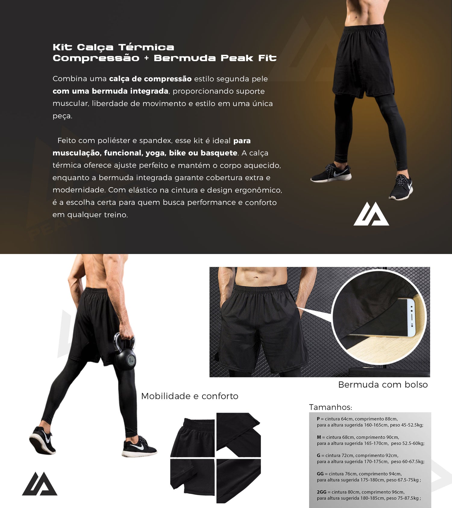 La combinazione perfetta per allenamenti comodi e ad alte prestazioni! Il kit pantaloni e pantaloncini a compressione termica Peak Fit unisce pantaloni a compressione effetto seconda pelle con pantaloncini integrati, offrendo supporto muscolare, libertà di movimento e stile in un unico pezzo.