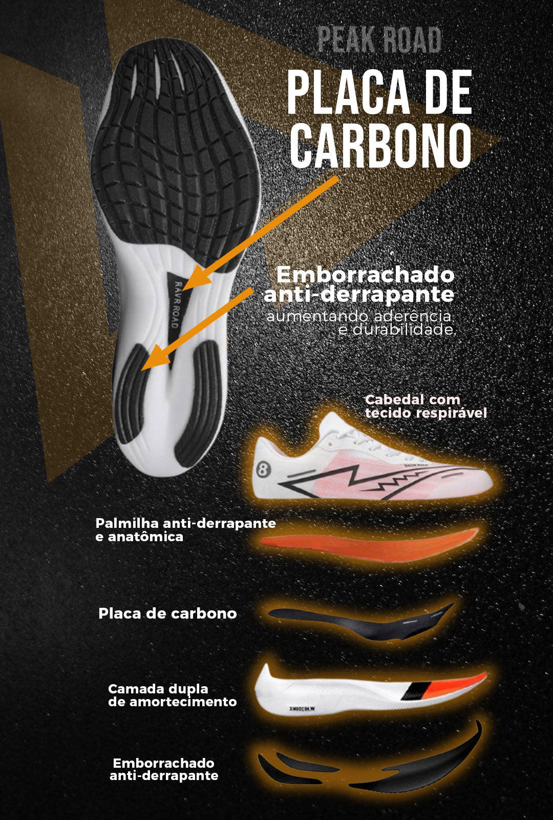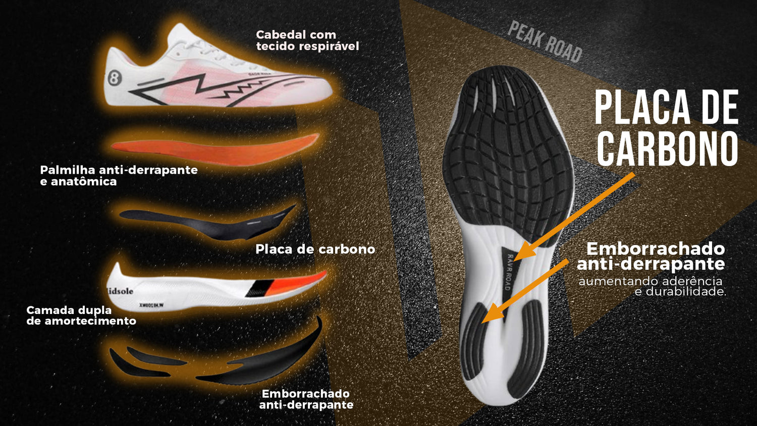 Progettata per superare i tuoi limiti durante gli allenamenti su medie e lunghe distanze, la scarpa da strada Peak offre la tecnologia più avanzata in termini di prestazioni. Dotata di una piastra in fibra di carbonio e di schiuma ammortizzante anti-impatto, offre un eccezionale ritorno di energia a ogni passo, garantendo maggiore slancio e minore affaticamento muscolare.