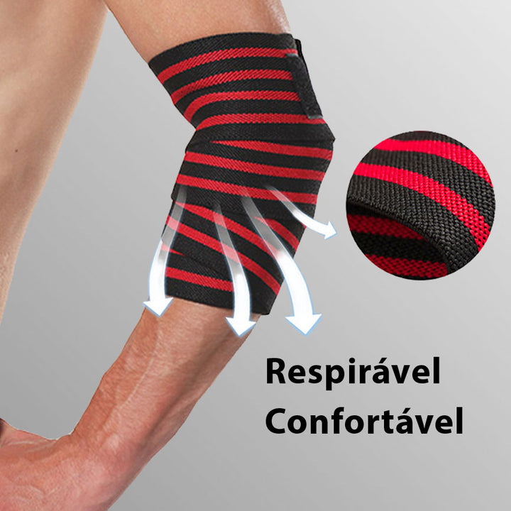 Suporte eficiente: Proporciona estabilidade ao cotovelo, reduzindo o risco de lesões e oferecendo segurança extra nos exercícios.