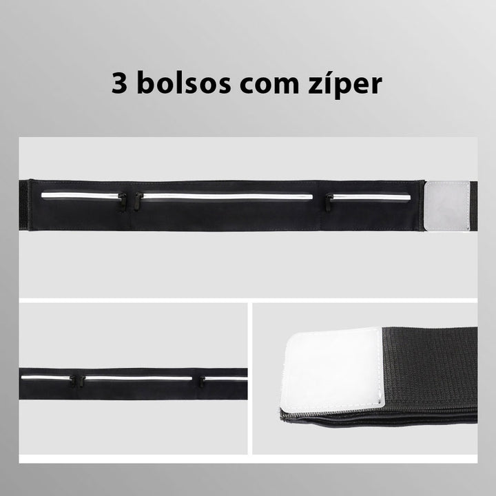 Cinto ajustável com velcro: proporciona um ajuste firme e seguro, mesmo em corridas intensas.