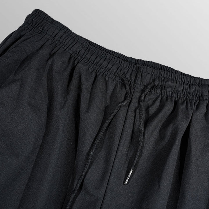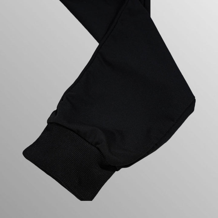 Feita com uma combinação de poliéster e algodão, ela oferece um toque macio, respirabilidade e durabilidade. O design slim, com elástico e cordão na cintura, proporciona ajuste perfeito, enquanto o punho canelado garante um caimento moderno e confortável.